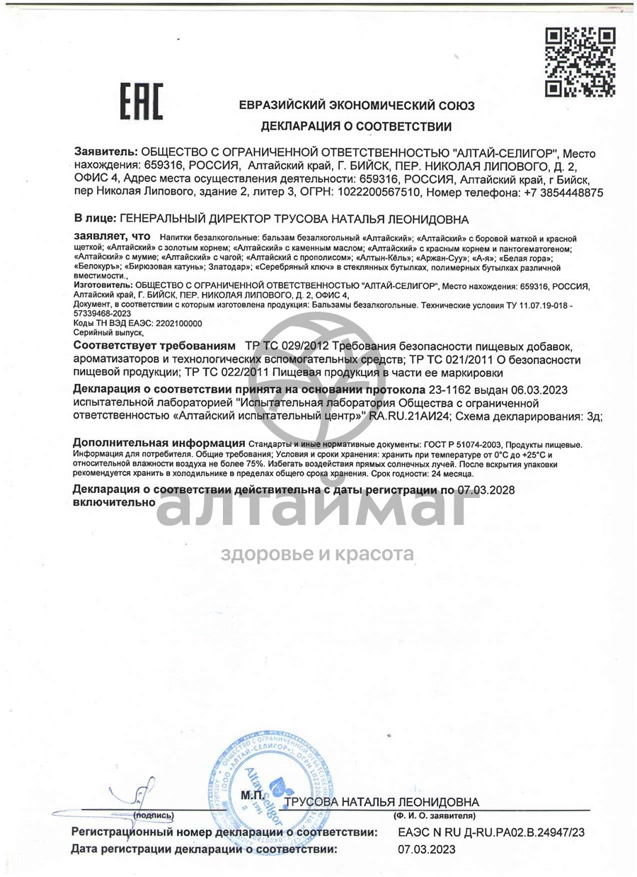 Бальзам Алтайский на минеральной воде Серебряный ключ Мумие.