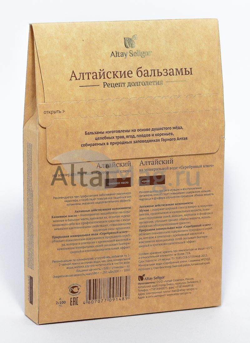 Бальзам Алтайский на минеральной воде Серебряный ключ Каменное масло, Бальзам Алтайский на минеральной воде Серебряный ключ Мумие.