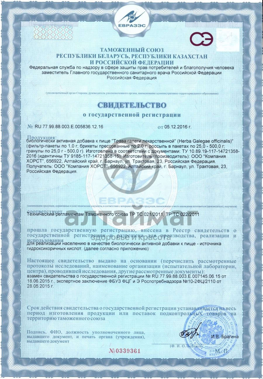 Источник гидроксикоричных кислот. Трава галеги лекарственной применяется при сахарном диабете, различных нарушениях пищеварения и необходимости стимуляции поджелудочной железы и надпочечников. Увеличивает толерантность к глюкозе, тонизирует гладкую мускулатуру, улучшает работу сердца и снижает кровяное давление. Используется как мочегонное, потогонное, лактогонное, сахаропонижающее, антигельминтное, антибактериальное средство.Масса нетто: