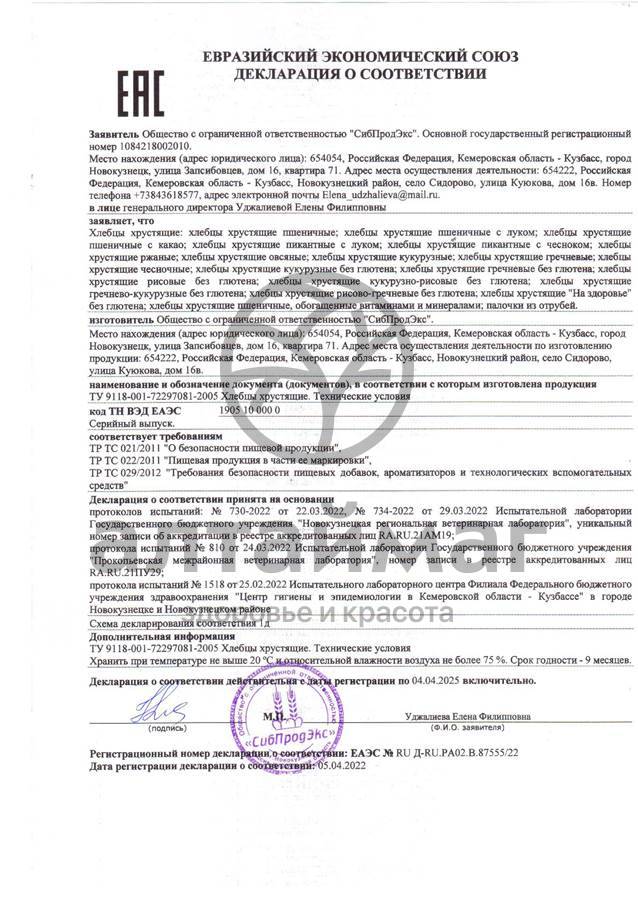 Для диет, не допускающих употребление глютена и лактозы, а также для замены хлеба в рационе.Характеристики: