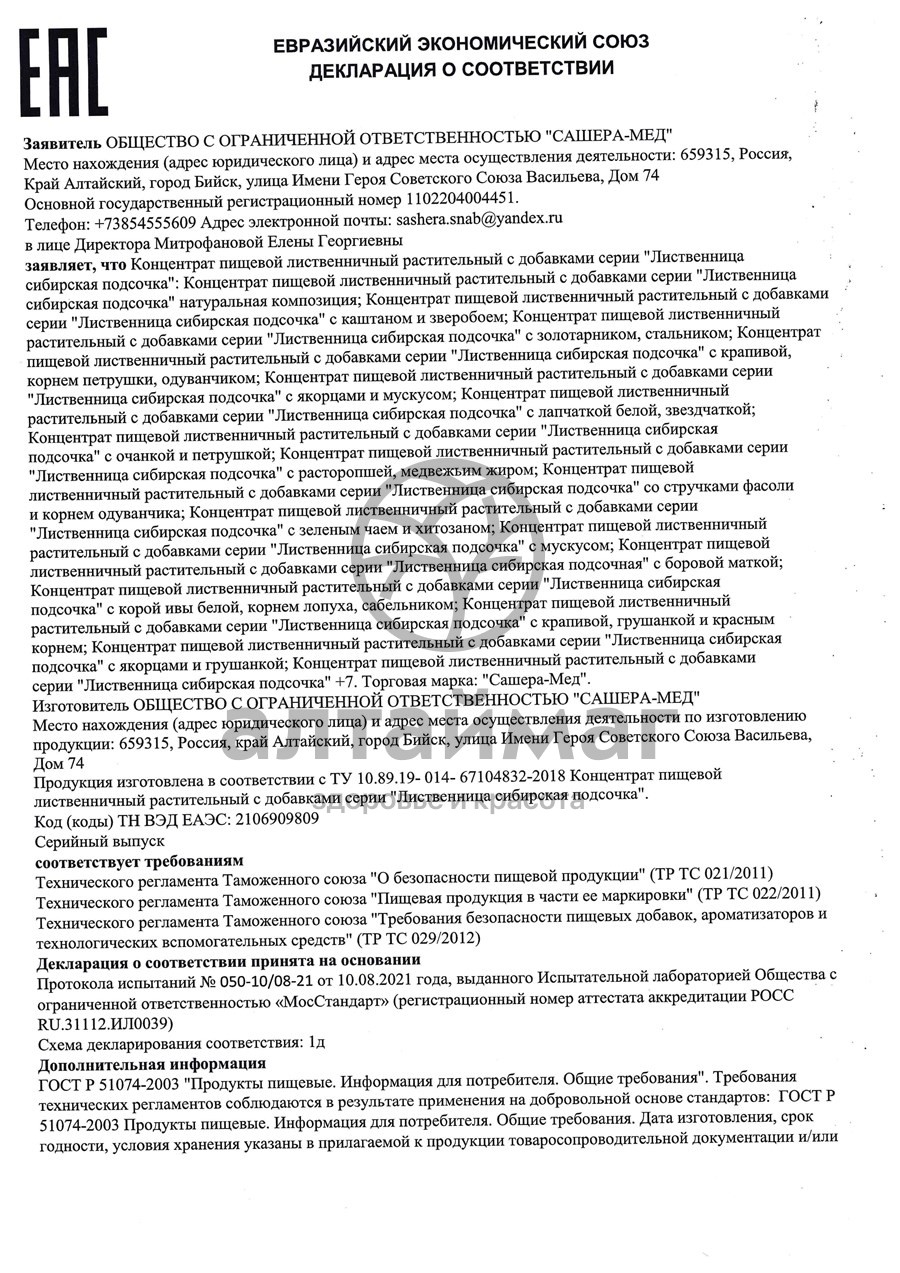 - Чтобы купить Лиственница сибирская подсочка 7+, 100 мл совершите всего несколько шагов: укажите количество продукта и нажмите на кнопку «Купить».